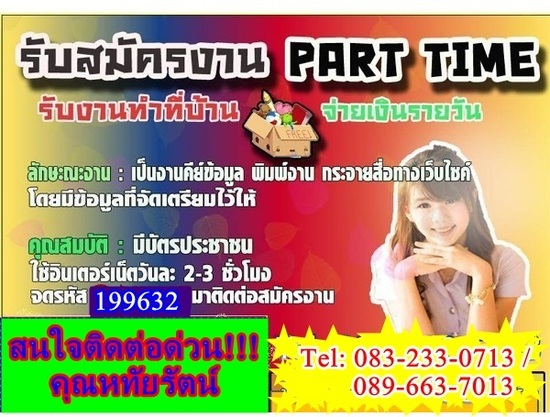งาน part timeเสาร์ อาทิตย์ งานเสริมทำที่บ้าน หลังเลิกงาน รายได้เสริม