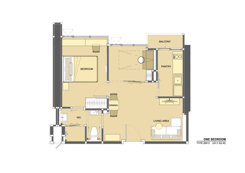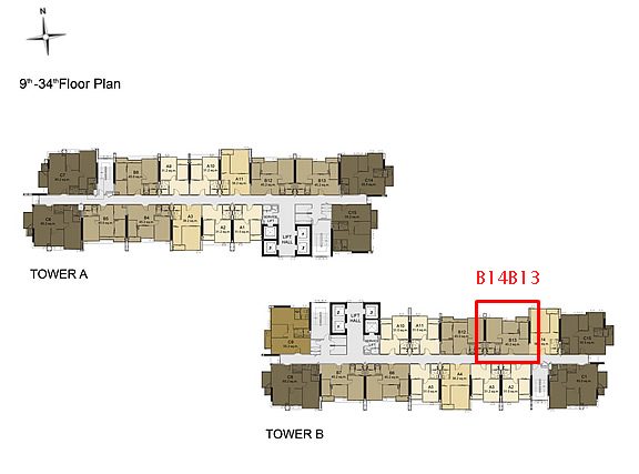 ห้อง B14B13, Tower B ชั้น 14 ขนาด 45.20 ตร.ม.