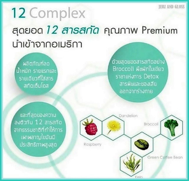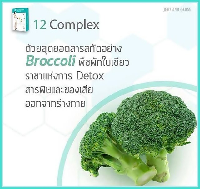 * 12 Complex ทเวล คอมเพล็กซ์ อุดมไปด้วยสุดยอดสารสกัด อย่างเช่น Broccoli พืชผักใบเขียว ราชาแห่งการ Detox สารพิษ และของเสีย ออกจากร่างกาย