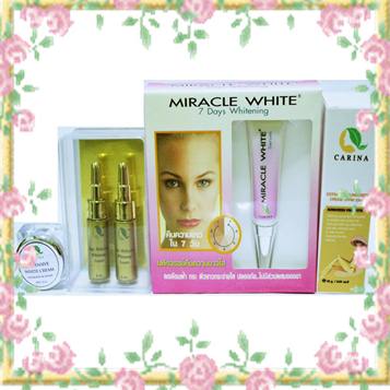 1.Miracle white มหัศจรรย์!คืนความ กระจ่างใส ฝ้า กระ จุดด่างดำ แลดูจางลงไร้ สารเคมี อันตรายไม่แดงแพ้เมื่อโดนแดดหรือ ผิวหมองคล้ำ หลังจากการหยุดใช้