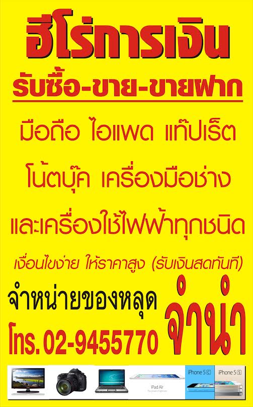 ร้านฮีโร่การเงิน รับจำนำ ซื้อ มือถือ โน๊ตบุ๊ค ทีวี กล้อง เครื่องใช้ไฟฟ้าต่างๆ ให้ราคาสูง ดอกเบี้ยพิเศษ ระยะเวลาเป็นเดือน ติดต่อ 091-7167155 line id = herocash