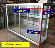 ขายตู้โชว์ ตู้แสดงสินค้ากระจกอลูมิเนียม สภาพใหม่มาก ความกว้าง 45 ซ.ม. ความยาว 160 ซ.ม. ความสูง 120 ซ.ม. มีล้อ จำนวน 1 ใบ ราคา 3500 บาท
