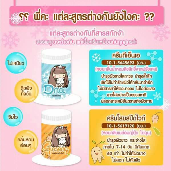 ปลีกส่งครีม DNA By Sweety skin รับสมัครตัวแทนจำหน่าย(รายได้ดี) ครีมบำรุงผิวขาวกระจ่างใส ขนาด 300 กรัม/500 กรัม ครีมโสมสปีดไวท์ เลขที่จดแจ้ง 10-1-5619120