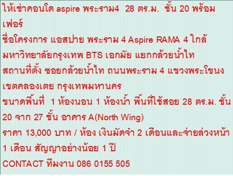 ให้เช่าคอนโด aspire พระราม4 ( แอสปาย พระราม4 )