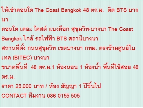 ขายคอนโด | เดอะ โคสต์ แบงค็อก สุขุมวิทบางนา | The Coast Bangkok | กรุงเทพ | บางนา | บางนา | สุขุมวิทc |