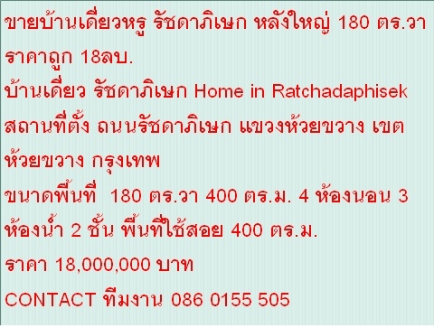 ไม่รับนายหน้า ขายบ้านเดี่ยวหรู รัชดาภิเษก หลังใหญ่ 180 ตร.วา ราคาถูก 18ลบ. ขายบ้านเดี่ยวหรู รัชดาภิเษก หลังใหญ่ 180 ตร.วา ราค รายละเอียดห้องและบ้าน ขายบ้านเดี่ยวหรู รัชดาภิเษก หลังใหญ่ 180 ตร.วา ราคาถูก 18ลบ.