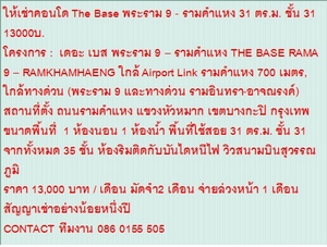 ไม่รับนายหน้า ให้เช่าคอนโด The Base พระราม 9 - รามคำแหง 31 ตร.ม. ชั้น 31 13000บ.