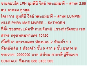ขายถูกมาก คอนโด LPN ลุมพินีวิลล์ พระแม่มารี-สาทร