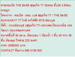 ไม่รับนายหน้า ขายคอนโด THE BASE สุขุมวิท 77 30ตรม ชั้น38 2.95ลบ. ขายถูก