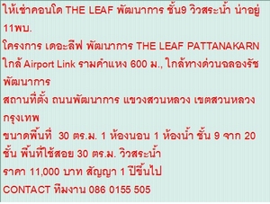 ให้เช่าคอนโด THE LEAF พัฒนาการ ชั้น9 วิวสระน้ำ น่าอยู่ 11พบ.
