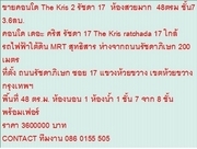 ไม่รับนายหน้า ขายคอนโด The Kris 2 รัชดา 17 ห้องสวยมาก 48ตรม ชั้น7 3.6ลบ.