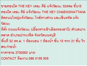 | สภาพ: | เดอะ คีย์ แจ้งวัฒนะ | จังหวัด: | กรุงเทพมหานคร | ||