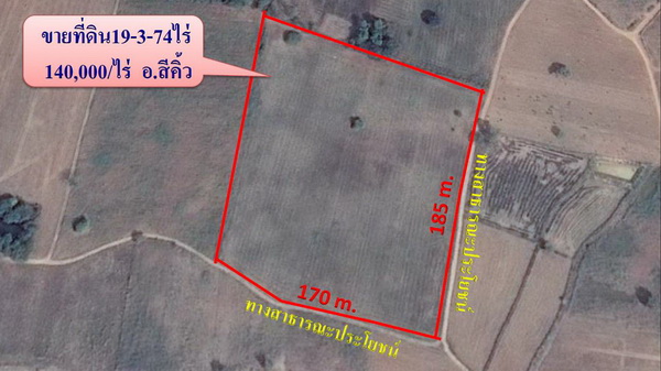 ขายที่ดิน 19-3-74 ไร่ รูปที่ดินสวยติดทางสาธารณะราคาถูก 140,000 ต่อไร่ อ.สีคิ้ว
