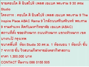 | ยี่ห้อ: | The Inspire Place ABAC Rama 9 | รุ่น: | The Inspire Place ABAC Rama 9 | ||