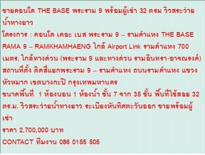 ขายคอนโด the base พระรามเก้า-รามคำเเหง 1 ห้องนอน 1 ห้องนำ้ ขนาด 32 ตรม ชั้น 7 ราคา 2.7 ล้านบาท