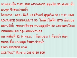 ขายคอนโด THE LINK ADVANCE SUKHUMVIT 50 32 sqare meter 1 นอน 2.5 MB วิวสระว่ายน้ำ ขายถูก