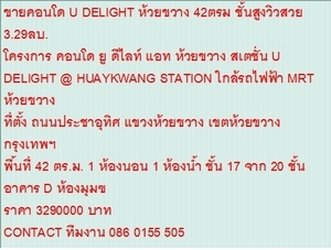 | ยี่ห้อ: | U DELIGHT @ HUAYKWANG STATION | รุ่น: | U DELIGHT @ HUAYKWANG STATION | ||