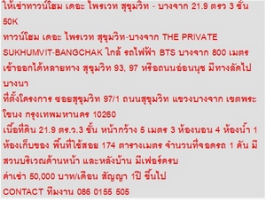ให้เช่าทาวน์โฮม เดอะ ไพรเวท สุขุมวิท - บางจาก 21.9 ตรว 3 ชั้น 50K
