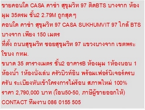 | ยี่ห้อ: | CASA SUKHUMVIT 97 | รุ่น: | CASA SUKHUMVIT 97 | ||