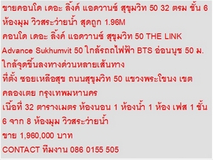 | ยี่ห้อ: | THE LINK Advance Sukhumvit 50 | รุ่น: | THE LINK Advance Sukhumvit 50 | ||