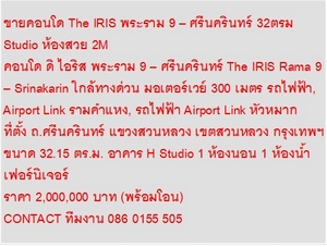 | สภาพ: | ดิ ไอริส พระราม 9 – ศรีนครินทร์ | จังหวัด: | กรุงเทพมหานคร | ||