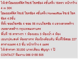 ไม่รับนายหน้า ให้เช่าโฮมออฟฟิศ ริชเช่ โชคชัย4 4ชั้นครึ่ง 16ตรว หน้ากว้าง 4 m 30K / ให้เช่าโฮมออฟฟิศ ริชเช่ โชคชัย4 4ชั้นครึ่ง 16ตรว ห รายละเอียด ให้เช่าโฮมออฟฟิศ ริชเช่ โชคชัย4 4ชั้นครึ่ง 16ตรว หน้ากว้าง 4 m 30K