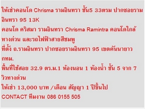 ให้เช่าคอนโด Chrisma รามอินทรา ชั้น5 33ตรม ปากซอยรามอินทรา 95 13K