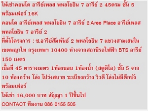 ให้เช่าคอนโด อารีย์เพลส พหลโยธิน 7 อารีย์ 2 45ตรม ชั้น 5 พร้อมเฟอร์ 16K