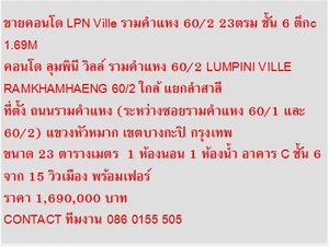 ขายคอนโด LPN Ville รามคำแหง 60/2 23ตรม ชั้น 6 ตึกc 1.69M