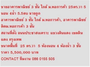 ไม่รับนายหน้า ขายอาคารพาณิชย์ 3 ชั้น ใกล้ ม.หอการค้า 25ตร.วา 5นอน 4น้ำ 5.5ลบ ขายถูก ขายอาคารพาณิชย์ 3 ชั้น ใกล้ ม.หอการค้า 25ตร.วา 5นอ รายละเอียดห้องและบ้าน ขายอาคารพาณิชย์ 3 ชั้น ใกล้ ม.หอการค้า 25ตร.วา 5นอน 4น้ำ 5.5ลบ ขายถูก