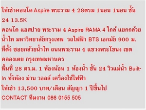 ไม่รับนายหน้า ให้เช่าคอนโด Aspire พระราม 4 28ตรม 1นอน 1นอน ชั้น 24 13.5K