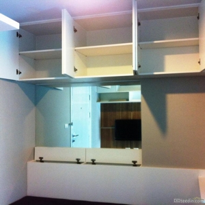 Built-In ทั้งห้อง - โซฟาใหญ่เต็มตัวใช้เป็น day bed หรือเตียงนอนแขกได้ มีตู้เก็บของและลิ้นชักหลายที่ ทีวีติดผนังห้องนั่งเล่นหมุนได้รอบ สามารถนอนดูได้จากเตียงในห้องนอน โต๊ะเครื่องแป้ง+โต๊ะเขียนหนังสือ ตู้เสื้อผ้า เตียงนอน ชั้นวางหนังสือ โต๊ะกินข้าวขยายขนาดได้ เคาน์เตอร์ครัวสำเร็จรูป