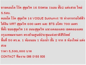 ไม่รับนายหน้า ขายคอนโด โว้ค สุขุมวิท 16 50ตรม 1นอน ชั้น2 แต่งสวย ใหม่ 5.5ลบ.