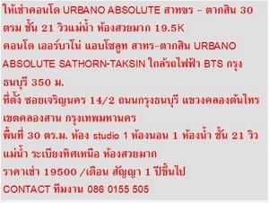 ไม่รับนายหน้า ให้เช่าคอนโด URBANO ABSOLUTE สาทร - ตากสิน 30ตรม ชั้น 21 วิวแม่น้ำ ห้องสวยมาก 19.5K
