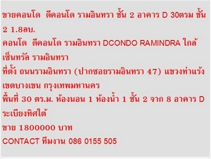 | ยี่ห้อ: | DCONDO RAMINDRA | รุ่น: | DCONDO RAMINDRA | ||