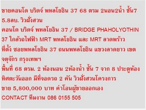 ขายคอนโด บริดจ์ พหลโยธิน 37 68 ตรม 2นอน2น้ำ ชั้น7 5.8ลบ. วิวฝั่งสวน