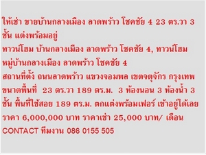 ขายและให้เช่า บ้านกลางเมือง ลาดพร้าว โชคชัย 4
