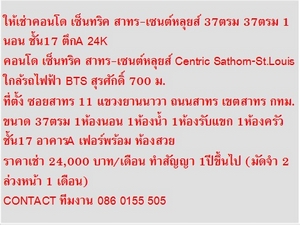 ไม่รับนายหน้า ให้เช่าคอนโด เซ็นทริค สาทร-เซนต์หลุยส์ 37ตรม 37ตรม 1นอน ชั้น17 ตึกA 24K