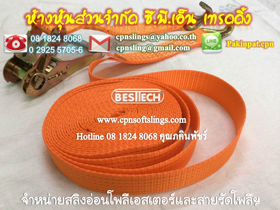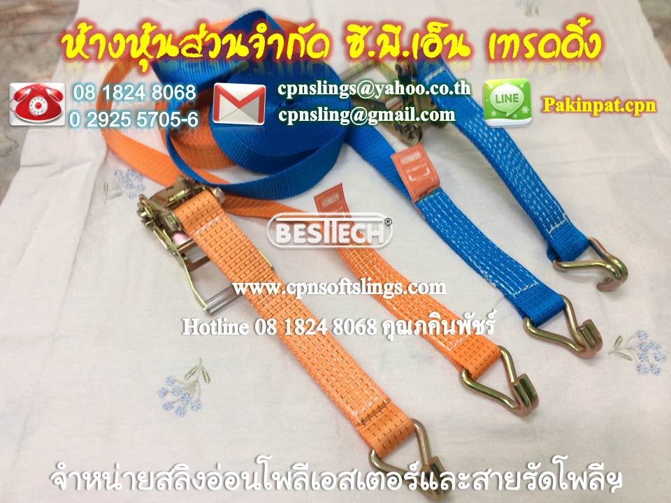 3.สายรัดโพลีเอสเตอร์ RATCHET STRAP พร้อมอุปกรณ์ผูกรัดชนิดต่างๆ ใช้สำหรับผูกรัดเพื่อการบรรทุก และ เคลื่อนย้ายสินค้า ขนาดความสามารถในการผูกรัด 1-10 ตัน