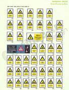 ระวังอันตราย, ระวังสะดุด, ระวังกัดกร่อน, ระวังวัตถุระเบิด, ระวังไวไฟ, ระวังรถยก, ระวังไฟฟ้าแรงสูง, ระวังพื้นลื่น, ระวังกรดเคมี, ระวังอันตรายไฟฟ้าแรงสูง, ระวังอันตรายจากเครื่องเชื่อมไฟฟ้า, ระวังอันตรายจากละอองฝุ่น, ระวังอันตรายจากสารแอมโมเนีย, ระวังอันตรายจากสารเคมี, ระวังอันตรายจากควันพิษ, ระวังอันตรายจากกรดกำมะถัน, ระวังอันตรายปั้นจั่นเหนือศรีษะ, ระวังอันตรายยกวัสดุด้านบน, ระวังอันตรายจากเปลวไฟ, ระวังอันตรายมีก๊าซไวไฟ, ระวังอันตรายจากกรดแบตเตอรี่, ระวังอันตรายจากกรดเกลือ, ระวังอันตรายจากไนตริก, ระวังอันตรายจากสารเคมี, ระวังอันตรายจากลำแสงเลเซอร์, ระวังอันตรายจากเชื้อโรค, ระวังอันตรายจากกัมมันตภาพรังสี, ระวังอันตรายจากวัตถุระเบิด, ระวังสนามแม่เหล็กความเข้มสูง, ระวังอันตรายจากเสียงดัง, ระวังอันตรายจากคลื่นเสียง, ระวังอันตรายจากเครื่องจักร, ระวังสะดุด, ระวังวัสดุตกจากด้านบน, ระวังนั่งร้านมีสภาพบกพร่อง, ระวังศีรษะ, อันตรายไฟฟ้าแรงสูง, ระวังพื้นผิววัสดุร้อน
