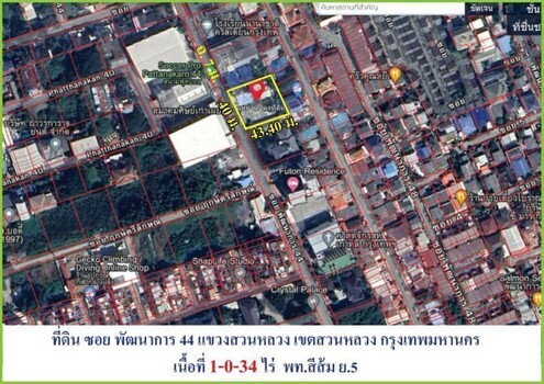 ขายที่ดินถูกต่ำกว่าราคาตลาดที่ดินถมแล้ว ถ.พัฒนาการ ซอย.44 เนื้อที่ 1-0-34 ไร่ แขวงสวนหลวง เขตสวนหลวง กรุงเทพมหานคร