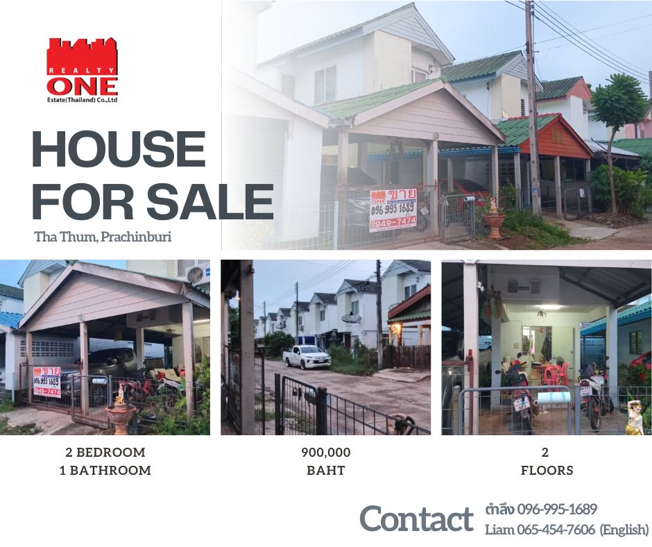 ขายบ้านเดี่ยว 2 ชั้น หมู่บ้านเอื้ออาทร ท่าตูม อ.ศรีมหาโพธิ ศรีมหาโพธิ