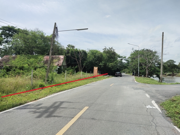 หน้ากว้างติดถนน 60 เมตร รูปแปลงสี่เหลี่ยมผื่นผ้า มีสะพานหน้าที่ดิน