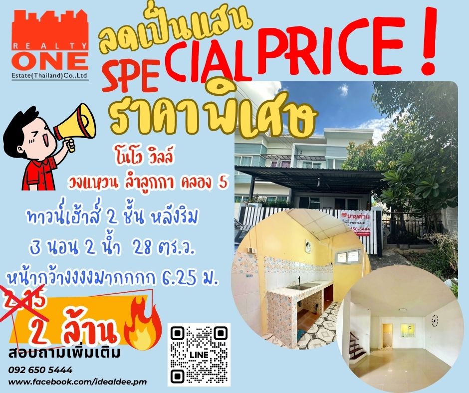 ขายด่วน ทาวน์เฮ้าส์ 2 ชั้น มีพื้นที่ใช้สอยขนาดใหญ่ หน้ากว้างถึง 6.25 เมตรเน้นการดีไซน์ พร้อมฟังก์ชั่นการใช้งานที่ลงตัว ทำเลใกล้รถไฟฟ้าสายสีเขียวเข้ม(ส่วนต่อขยาย) สถานีคลอง 5(ในอนาคต), ใกล้ถนนวงแหวนรอบนอกฝั่งตะวันออก(บางนา-บางปะอิน) และทางด่วนรามอินทรา-วงแหวนรอบนอก แวดล้อมด้วยสิ่งอำนวยความสะดวก เช่น โฮมโปร, โลตัส ลำลูกกา คลอง 5, บิ๊กซี ลำลูกกา คลอง 5, โรงพยาบาลสายไหม และโรงเรียนแย้มสะอาด คลอง 4