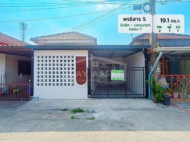 ขายทาวน์เฮาส์ชั้นเดียว หมู่บ้าน พรธิสาร 5 - รังสิต - นครนายก คลอง 7 เนื้อที่ 19.1 ตร.ว. ขายเพียง 1,190,000 ล้านบาท