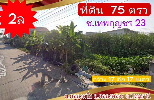 ขาย ที่ดิน ถ. ไอยรา 75 ตรว จ.ปทุมธานี อ.คลองหลวง ซ.เทพกุญชร 23