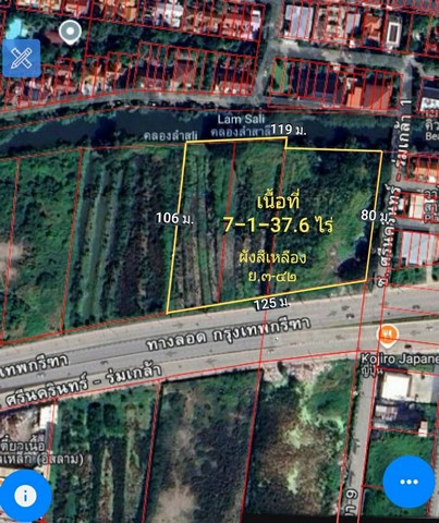 ขายที่ดินทำเลทองถนนกรุงเทพกรีฑาตัดใหม่ (เนื้อที่ 7-1-37.6ไร่ รวมเป็นเงิน 514 ล้านบาท ) แขวงหัวหมาก เขตบางกะปิ กรุงเทพฯ