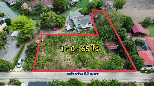 - เนื้อที่ 1-0-65 ไร่ หน้ากว้างประมาณ 52 เมตร รูปแปลงคล้ายสี่เหลี่ยมผืนผ้า ที่ถมแล้วเท่าถนน (ดูรูปแปลงที่ดินจากในรูป)