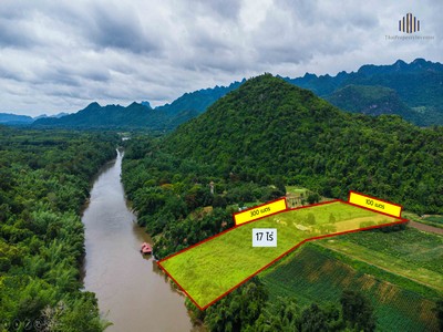 ขาย ที่ดินติดแม่น้ำแควน้อย 17ไร่! ไทรโยค วังกระแจะ กาญจนบุรี ทางลงน้ำเป็นหาดทราย แปลงสี่เหลี่ยมผืนผ้า รถยนต์เข้าถึงที่ดินได้ เจ้าของขายเอง!
