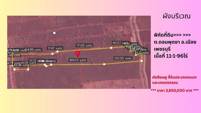 ขาย ที่ดินใกล้ถนนเพชรเกษม จ.เพชรบุรี แปลงใหญ่ 11-1-96 ไร่ ผังสีชมพู